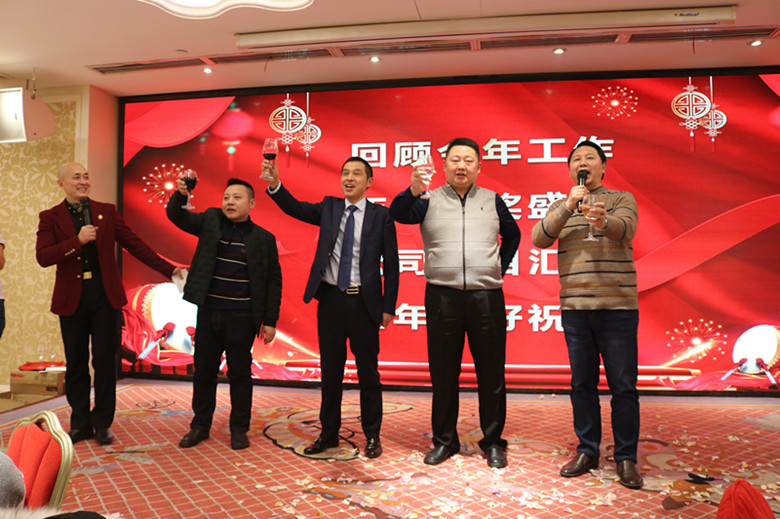 最后,公司領(lǐng)導(dǎo)走上舞臺,端上幸福的美酒,與全體員工一齊為新的一年舉杯同慶!